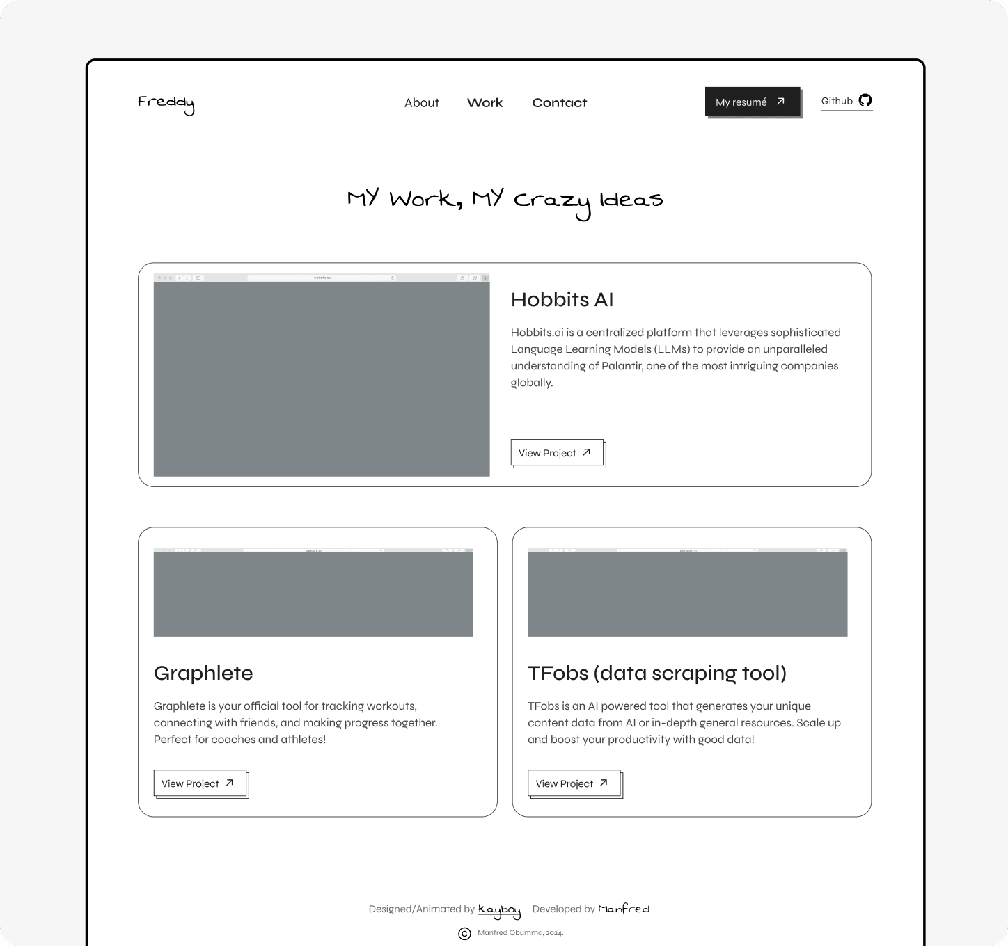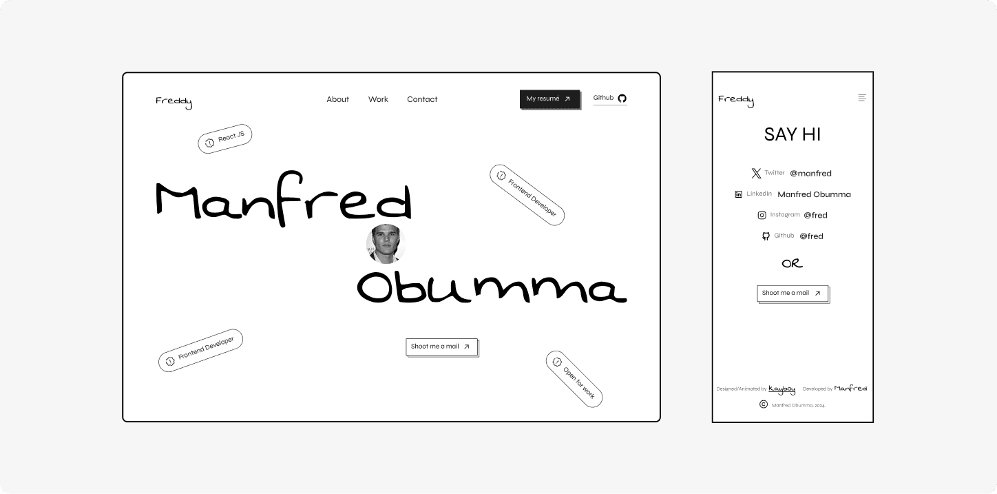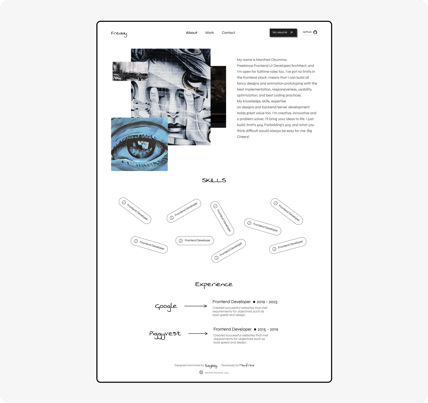 "This is really beautiful! And it ticks every single box. The minimalim, floating animation in the skill section, the monochrome feel, everything is really, really good!"